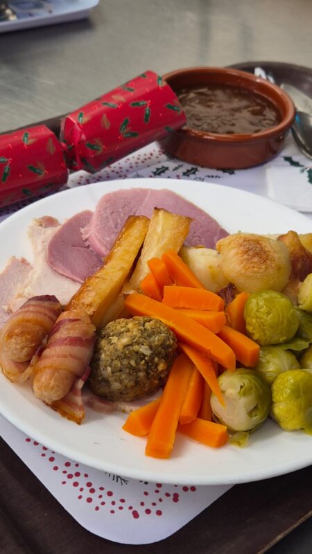 Our residents have opened their gifts of Christmas and are now ready to enjoy a traditional Christmas lunch prepared by Tracey and her kitchen team.