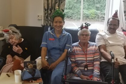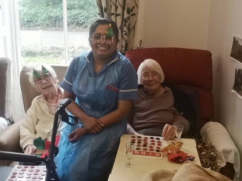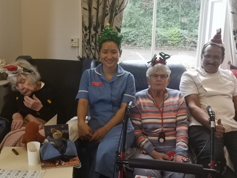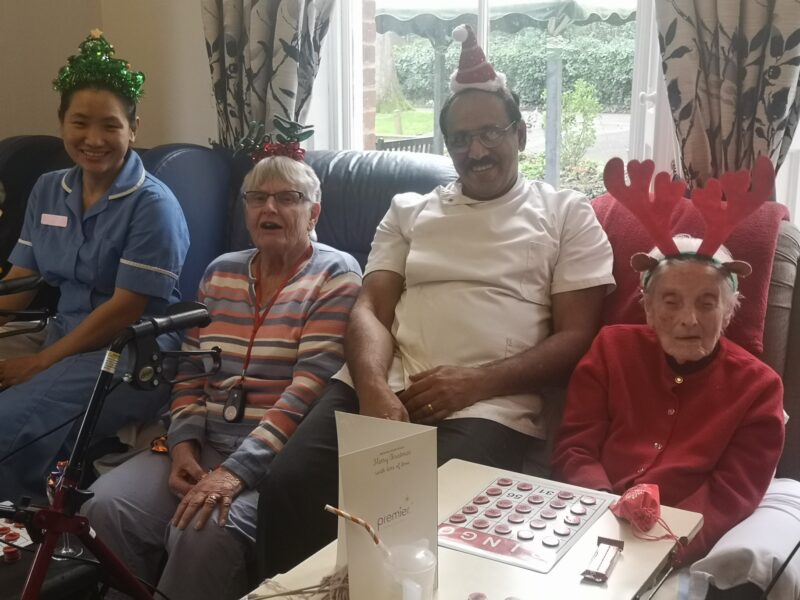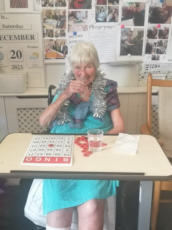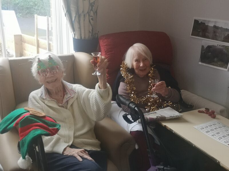 After their lovely lunch it was time to relax with our carers for games and of course a glass of cheer to celebrated the day.
