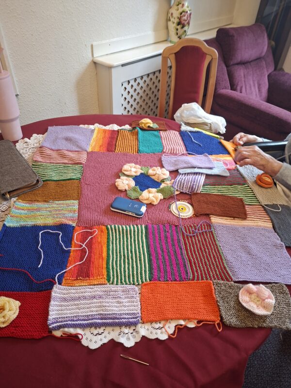 Our knitters were proud to present their finished blanket to everyone. It is absolutely stunning with so many knitted sections that had to be joined together to make one beautiful piece. The intricate flowers are so clever too. Well done to everyone involved.